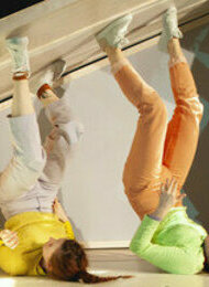 Zwei Menschen sitzen in einer Box fest und kommen nicht mehr voneinander los. Sie sind verwirrt und fühlen sich auch etwas unbehaglich. Sie entdecken, dass sie nicht allein sind. Jemand ist da draußen. Will der reinkommen? Langsam nähern sich die beiden und alles verwandelt sich zu ansteckendem Lachen. Ein Tanztheater über die Suche nach dem Anderen und über das Zusammensein für die Allerjüngsten.