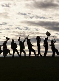 Klubzmer ist ein Kollektiv: Wir sind 8, 14, 16? Freunde, die die Liebe zu osteuropäischer und Klezmer-Musik teilen und mit wild vergnügten Arrangements und Spielfreude Wärme im kühlen Norden verbreiten. Saiten, Bläser, Streicher, Stimme, Akkordeon, Tuba und Percussion bringen die Luft zum Vibrieren und die Hüften zum Schwingen. Von Bulgarien über Italien nach Polen, Kenia oder die Ukraine geht die Reise. Mal in liebevollem Arrangement, dann wieder Haudrauf immer in die Vollen. Anfangs trafen wir uns zur Jam-Session im Hamburger Gängeviertel - inzwischen haben wir auf Wohnprojektpartys, in Clubs und auf Straßenfesten reihenweise Menschen jeden Alters zum Tanzen gebracht!